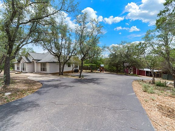 This remote property is nestled amongst gorgeous mature shade trees, perfect for optimal peace and tranquility. Completely fenced, homeowners will enjoy the remote-controlled gate and paved road guiding them to the property's home and barn. Upon arrival, the home's exterior has been recently repainted white. Inside, soaring ceilings and a neutral color palette are accented by architectural arches, picture windows, and plantation shutters. The semi-open floorplan showcases a grand living space with a warm fireplace. The gourmet kitchen offers ample gray cabinetry with stylish finishes, a subway tile backsplash, granite counters, a center island with a wine fridge, stainless steel appliances, and an eat-in kitchen. The dedicated office space can be closed off for privacy. Retreat to the roomy primary with elevated ceilings, natural lighting, and a spa-like en suite. Dual sinks, contemporary fixtures, and a marble-like soaking tub and walk-in shower complete the primary. Two secondary bedrooms complete the interior. A wet weather creek can be found at the back of the property in addition to two gardens, a barn, shed, chicken coop and playhouse. Perfect for 4H and FFA agriculture proje
