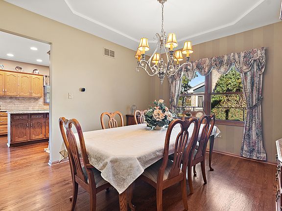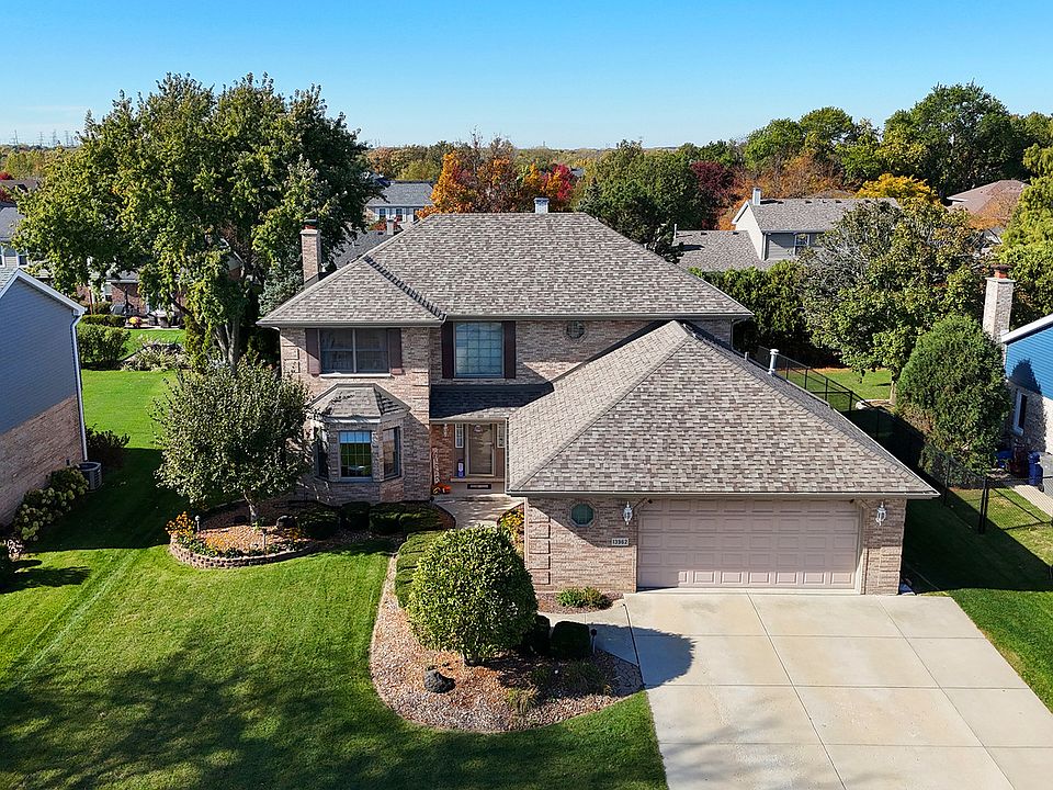 Welcome to this well-maintained Orland Park home. Walkable to the Centennial Elementary School and park. Close to shopping, dining, and all the amenities the area is known for. Curb appeal pops with a brand-new roof, siding, and gutters. Inside, a smart layout features a loft and four upper-level bedrooms including a primary suite with a decorative ceiling, jetted tub, vanity, and walk-in closet. Convenient upstairs laundry. The main level flows from a double-door entry living room into a cozy family room with a brick fireplace; the dining room also features a decorative ceiling. The kitchen shines with hardwood floors, granite countertops, a complementing backsplash, stainless steel appliances, a center island, and a planner's desk. Most windows have been recently replaced with Marvin double hung windows. Garage lovers: you'll appreciate this 8 foot tall garage door and 29' wide x 23.5' deep 3-car garage. With floor drains, hot/cold water with a wash tub, plus its own AC unit and heater, this garage is ideal for projects year-round. The finished basement is a standout with a large recreation area, gaming zone, and a full bathroom. Perfect for movie nights, play space, or party hosting. New Pella slider leads to stamped concrete patio and an oversized shed for extra storage. This is a move-in-ready home with practical upgrades and fantastic spaces throughout.
