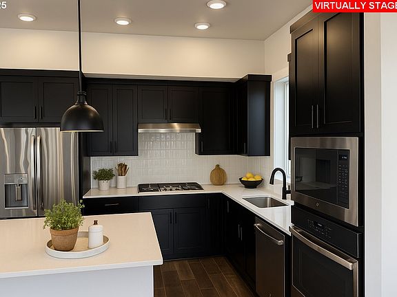 Let me show you how affordable living in this community can be! This 3-Bedroom, 2.5 Bathroom detached home with entry via the 8 ft front door. Upgraded Urban/Black cabinets & boasts 10ft ceilings on main, wood wrapped windows, 7" baseboard trim, and quartz countertops throughout in this great room open living concept. Fenced side yard for enjoyment. This neighborhood is set to have future retail development within the neighborhood including restaurants, coffee shops, bakery etc. Come see the pickleball courts, parks/play structure, fenced dog park, Ampitheater and more! 2 of these left then we are sold out. Low HOA too only $78/month takes care of your front yard landscaping. Protecting your investment.