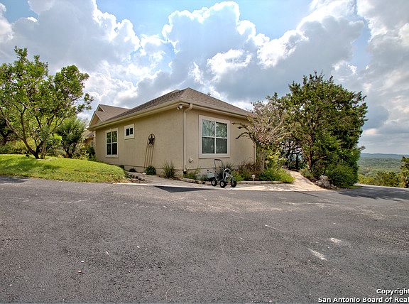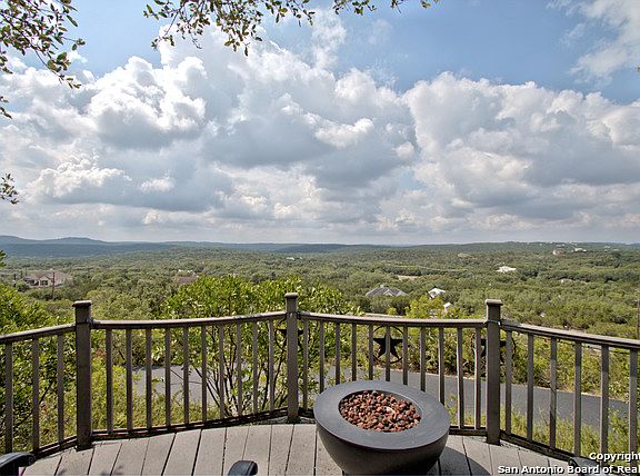 Remarkable hilltop views for miles from this secluded custom home on 5 acres in Helotes Spring Ranch. Relax on any of 3 different outside decks, while watching the abundant wildlife and lush landscaping. 3 bedrooms, 2.5 baths, 2 living areas, granite counters, convection oven, new central vac, water softener, all electric, gated entrance and fenced around the entire property. Brick walkway around the entire house, sprinkler system, water well, storage shed and much, much more.