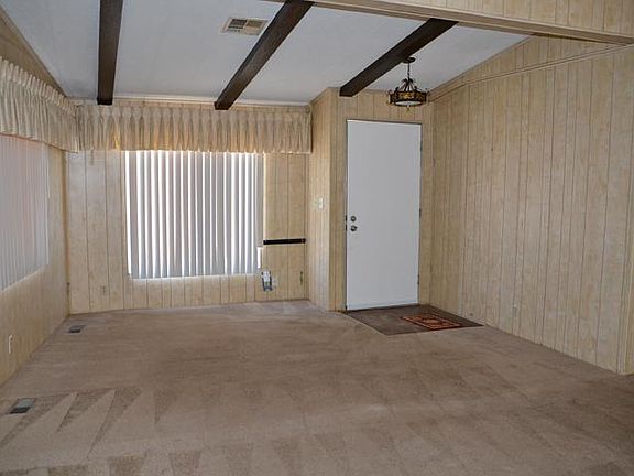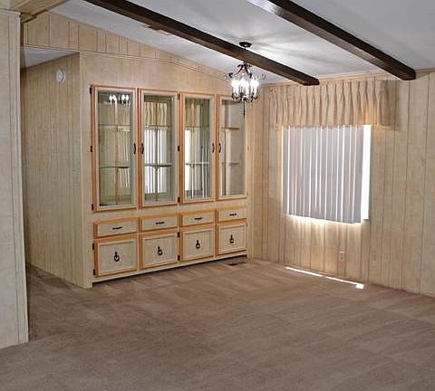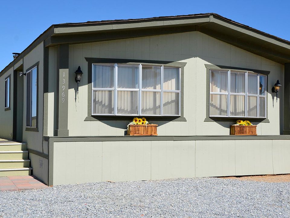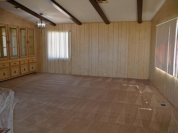 Very cute manufactured home for a small family or retiring couple. Enjoy the privacy of the area while being centrally located off of Palmdale Road and near all the retail development in nearby Victorville. This home has 2 bedroom and 2 bathroom and features an en-suite master complete with dual vanity and a separate shower and soaking tub. Kitchen features white cabinets with maple counters and black on black cooktop, new kitchen flooring, fireplace, living room, dining room, family room, kitchen with bar stool sitting area, outside shed approximately 10ft by 4ft. Owner pays for electric and water. Home is on propane. Home comes with stove top, built-in oven, and dishwasher, Home also has washer, dryer, refrigerator, but owner does not warrant. Central heating and AC built into wall. New tile flooring in master bathroom. Home has new furnace and water heater. Home is excellent for truck drivers, boats, RV parking! This home has no garage. ** Note: This property is fully fenced. Home has a No Pet Policy. No Garage but has large storage shed. Owner will pay for water and electric.