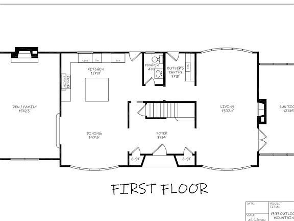 - Level 1 Rooms: LivingRm, FamilyRm, Kitchen, DiningRm, Sunroom, Den, PowderRm, Vestibul, LivDinRm, Toilet