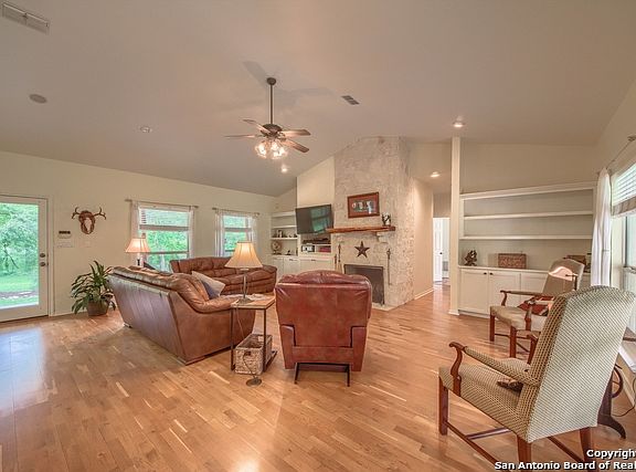 Pride of ownership shows on this property. Home is on beautiful 4.3+- tree covered acres with Oak, Elm & Cedar. 4 bedroom 3 bath 2490 sq ft open floor plan house. Kitchen, Dining & Living combined. Partial fenced with seasonal creek crossing the property. Electric gate, paved drive, metal shop building and 2 carport parking. Enjoy evenings on back porch watching wildlife and coffee on the secluded master suite patio. 4-H & FFA projects are allowed except swine.