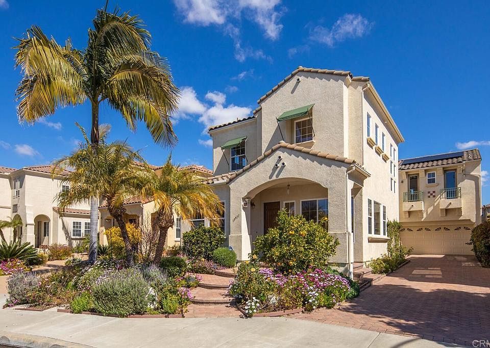 This stunning home is located in the desirable Torrey Del Mar community and sits on a quiet cul-de-sac. The interlocking paver entry and patio invite you into its gorgeous light filled interior. The interior of the home features a flowing floor plan, soaring ceilings, 8" crown moulding, and beautiful Brazilian Cherry and Canadian Maple hardwood floors. The generous windows throughout the home allow for ample natural light to flood in, creating a warm and inviting ambiance.The gourmet kitchen is a chef's dream, complete with granite counters, stainless steel appliances, a walk-in pantry, and a five-burner cooktop. The bright and spacious family room features a cozy gas fireplace, perfect for relaxing on chilly evenings. The home boasts four bedrooms and three bathrooms, with one bedroom and full bath located downstairs, and three bedrooms upstairs, including a palatial master suite with mountain views and a gorgeous ensuite bathroom, complete with a separate soaking tub and dual vanities. The other two bedrooms share a Jack and Jill bathroom, and bedroom three even features a convenient Murphy bed. Other notable features of the home include a huge walk-in closet in the master bedroom, central air conditioning and heating, and a fully owned solar system. The yards are tastefully landscaped and offer a raised bed, raised bed, wax apple, guava and citrus trees. This move-in ready home is located within the highly acclaimed Poway Unified School District and offers easy freeway access, shopping and dining.