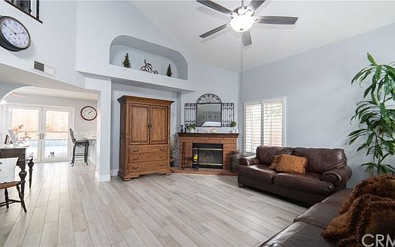 The Pride of ownership does not begin to describe the care that went into remodeling this house to make it a home. As you walk through the newly gated spacious front porch gates You will be amazed at the impressive and well-cared-for garden and front lawn. Walkthrough the front door you will see the inviting living room. You are greeted with soaring vaulted ceilings showcasing the abundance of natural light. The open floor plan welcomes you with a cozy fireplace in the living room, custom window shutters, and a new ceiling fan. The home features a large family room, a formal dining area, and a spacious kitchen featuring Quality Kitchen appliances, plenty of cabinets, a food pantry, and views of the outdoor pool and spa. The windows and doors have been upgraded to dual-pane. From the dining area, you will walk through the new double doors into the new covered patio in your own private enclosed backyard with a private pool and spa with plenty of room for your summer BBQs. Great for entertaining. The yard has a newly built well-constructed tree house a great hangout space for the kids. The side yards have concrete and are great for your RV, Trailer, and toys. You will also, notice a brand-new built shed for storage, new brick walls adding to your privacy, and a brand new water heater. The home features new beautiful wood Title Flooring downstairs, a remodeled bathroom, indoor laundry, Central Air/Heat, and new paint. You will be surprised by the spacious wide stairway with newer rails leading to the upstairs. The spacious master suite includes, pitched high ceilings, tile walls, dual sinks, and a walk-in closet. Two additional bedrooms and a bathroom complete the upstairs. The home is located with easy access to major freeways, minutes from Ontario Mills and Victoria Garden Malls for shopping and restaurants. Hurry this home will not last.