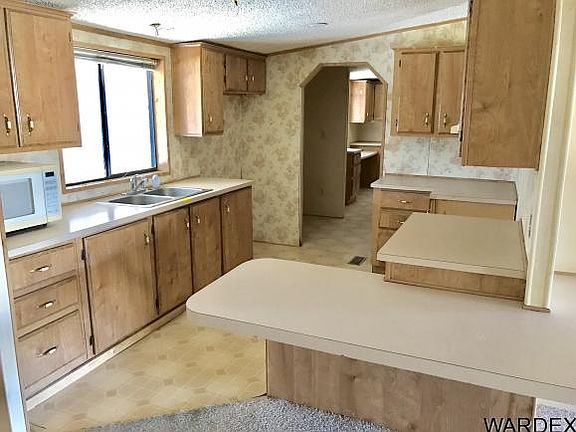 A diamond in the rough... come and get this one! Solid ground set manufactured home on a cul-de-sac in a relaxed neighborhood in ideal location close to shopping, medical, dining, minutes to the Colorado River, Laughlin Nevada casinos & entertainment, Laughlin/Bullhead International Airport (IFP), Lake Mohave for fishing and boating, plus only 90 miles south of viva Las Vegas! Home offers 2 bedrooms, 2 bathrooms, large living space, open kitchen with breakfast counter & lots of counter space, dining area built-in hutch with glass display doors, HUGE laundry room with loads of cabinetry could double as a hobby room, fenced yard, full length covered patio and also covered carport plus enclosed workshop! Great Price! Don't miss it!