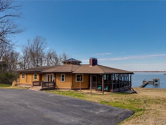 Welcome to 1398 Jordan Point Road! Spectacular, 180-degree RIVERFRONT view of the James River, with your own private 150 ft dock, boat lift, and pond all on your property! Contemporary cedar log style home with 6 bedrooms, 4463 square feet on 5 private acres with 198 feet of water frontage. Built around a huge great room with vaulted ceiling and all cedar interior on the first floor. There is a stone fireplace, dining area and kitchen with Granite countertops, stainless steel appliances, overlooking the river. Access to the breakfast room with enclosed porch and separate screened porch. Bedroom wing with primary suite and two additional bedrooms and hall bath. Walk out lower level features the same footprint with huge family room with wet bar, stone wall with wood stove and doors to lower back deck. Dock has power with boat house and lift, as well as hot and cold running water. Bulk head across most of the front of the river. 24x24 foot detached garage, 12x30 pole barn, attached garage on river side of home perfect for storing your boat or jet ski. Take an afternoon boat ride to Rockett's Landing. Vacation living 365 days a year! Heres your chance to own a piece of paradise.