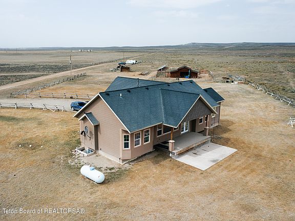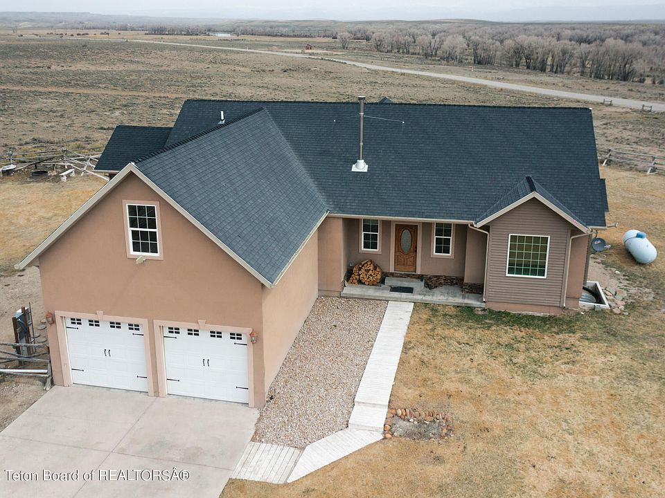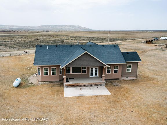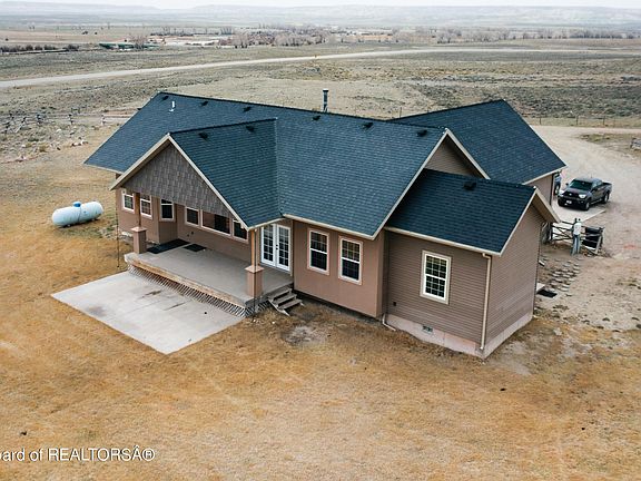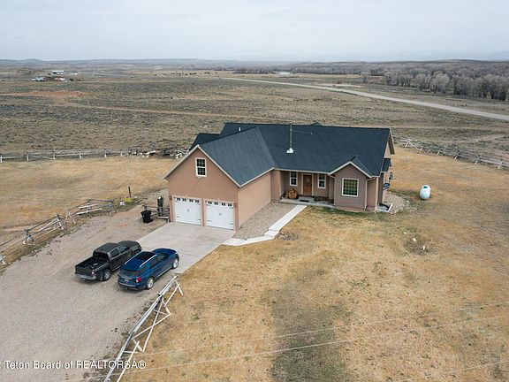 Escape to this beautiful home complete with a huge, newly installed solar array. This home sits on 35 acres with room for countless hobbies. The open concept main level includes the spacious master bedroom and bathroom, a large guest bedroom with attached storage room, two water heaters, vaulted ceilings, a wood burning stove and granite countertops in the kitchen. The living room boasts a large picture window with sweeping views of the Wind River Range, but if you would rather enjoy the view from outside you can step through the sliding glass doors and enjoy it from the large back porch. The home has been recently updated with brand new carpet and LVT flooring. For your entertainment purposes, there is surround sound and Ethernet wiring in both the upstairs and downstairs living rooms. On the lower level, there is a second full kitchen, second laundry room, with two bedrooms and bathrooms. In addition to the wood burning stove, there is electric heat with a separate thermostat in every room. The property features a 15-zone sprinkler system, 2 stall garage with 12ft ceiling, a barn with an insulated and fenced chicken coop and a camper power, water, and sewage clean out. Not only that but it directly borders BLM on one side and is minutes from fishing access on the New Fork River. Looking for storage space? The house has attic access above the garage and climate controlled attic space over the master and guest bedrooms. There is additional storage space on the lower level as well. This house has it all and then some, don't wait any longer to come take a look for yourself!