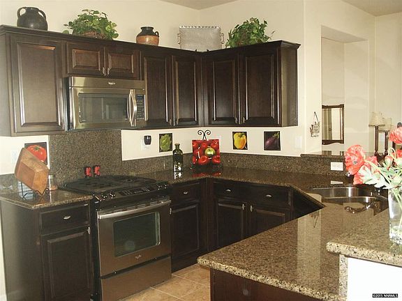 This is a gorgeous "Tahoe" model, built in 2012 on an oversized .17 acre lot. Interior features include slab granite counters, designer neutral paint, beautiful shutters on all windows including the garage, a gas fireplace w/niche in the great room, bay window in the master, dark stained wood cabinets throughout, extended tile floors, upgraded carpet, stainless steel appliances, all included, phantom screen on front door, security system and more. Lush landscaping, front porch, paver patio/walkway included.