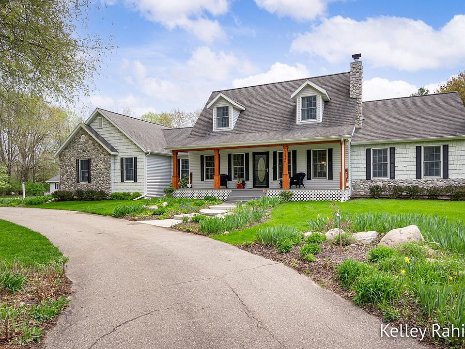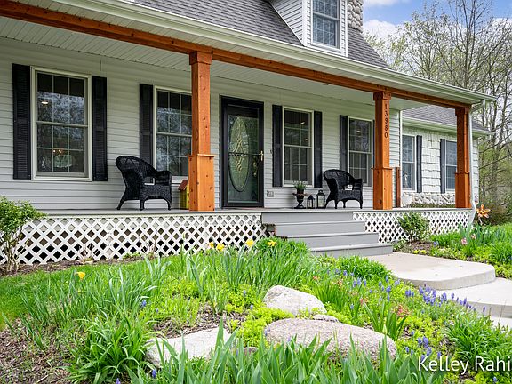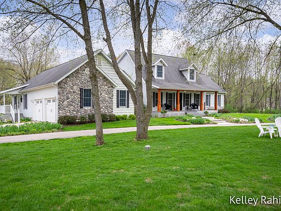 This hidden gem in Lowell is sure to please nature lovers and outdoor enthusiasts along with anyone looking for an attached apartment/guest suite. You will fall in love with the idyllic setting as you drive through Fallasburg Park, over the covered bridge and through Fallasburg Historic Village to get home. The curb appeal is second to none with the beautifully manicured lawn and gardens, circular driveway, and covered front porch. With 3+ acres and Flat River frontage, the main house consists of 4 bedrooms and 3.5 baths. The updated kitchen is ideal for entertaining large groups with an oversized center island and gathering space. The dining area and sunroom offer seasonal views of the river. There is also a generous size living room with with a gas fireplace and built-in shelves. The primary bedroom suite is on the main floor. Upstairs are two bedrooms with walk-in closets and a bathroom. The finished walkout basement offers the 4th bedroom (currently being used as an office), bathroom, plenty of storage and a family room with slider to patio. The guest suite/apartment has a private entrance, 2 bedrooms, bath, kitchen, living room and family room. The additional 24 x 40 detached garage is perfect for extra cars and all your outdoor equipment! It is a short path to the river for hours of entertainment and activities. If you need more than 3+ acres to roam, the 267 acre Fallasburg Park is out your front door! A section of the North Country Trail runs through the park which means you can hike for miles and miles. You can also kayak, canoe, fish, play disc golf, use the ball fields and enjoy the playground and picnic areas. This property has it all and is waiting for new owners!