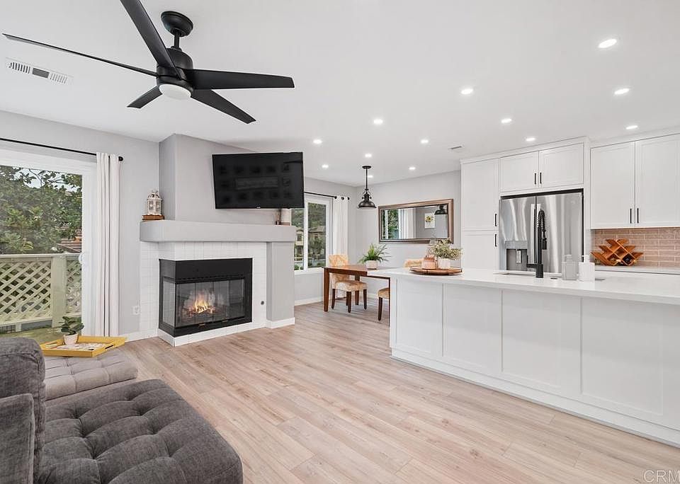Welcome to your fully remodeled 2 bed 2 bath top floor unit in the renowned POWAY UNIFIED school district. Open floor plan with a beautiful modern kitchen that opens to the family room. Brand new LVP flooring installed January 2024 and new carpet in bedrooms installed at the same time. Bathroom lighting and vanity upgrades done this January as well! Enjoy the convenience of your in unit stackable laundry and TWO CAR garage located steps from your door with a third uncovered spot also available. A short walk and you can enjoy a wonderful farmers market every saturday, local dining and shops, and Midland elementary school. Come and see the beauty this home has to offer!