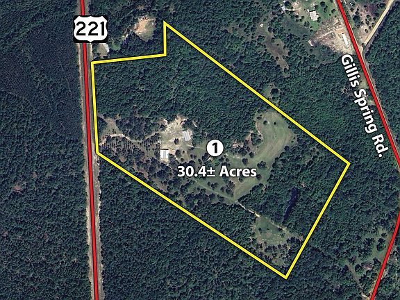 Property is selling via online auction. The bidding ends Nov. 18th at 12 noon. The only place to offer and bid on this property is the south auction web site. The price posted is only an estimate and it is likely the price will go over this amount on auction day Nov. 18th. Please only offer and bid on the south auction web site. Open house on Nov. 14th 12pm - 3pm. GREAT chance to own 38 acres, two wells, barndominium, and great hunting. ONLY 3 miles off I-16! The metal barn has living quarters on one half and covered shop on one side. Totaling 2000 sq ft. The pole barn is brand new and great for equipment and tractor storage. There is a great food plot site behind the home, hardwood bottums, and wet weather creek / pond site. Perfect getaway and home site! There are two septics and two wells on the property and an old wood frame farm house that fronts Gillis Springs road. There is also an addtional 12 acres that is across the road that is available on the auction as well.