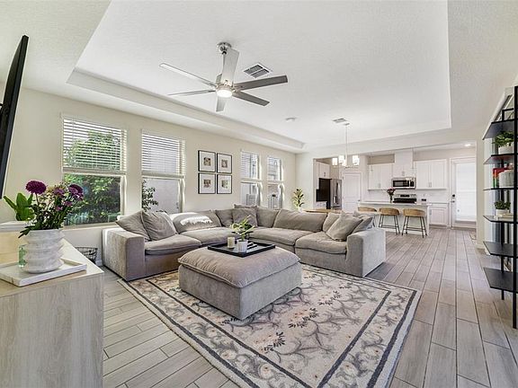 Welcome to Tuskawilla Crossings, where elegance and comfort meet in this STUNNING 5-bedroom, 3-bath residence. Built in 2019 and maintained in PRISTINE CONDITION, this home offers more than 2,500 SQUARE FEET of luxurious living space in a community known for its TOP-RATED SCHOOLS, resort-style amenities, and picturesque setting. From the inviting COVERED FRONT PORCH, step inside and immediately feel the warmth of this elegant residence as you're captivated by the home’s bright, open design, soaring TRAY CEILINGS and abundant natural light. The main living area flows seamlessly into the Dining and Kitchen spaces, creating a true entertainer’s dream. The CHEF'S KITCHEN is a showpiece with white solid wood cabinetry, stone countertops, and a sleek breakfast island, while a glass door opens to a sprawling VINYL-FENCED BACK PATIO area complete with a modern ceiling fan—an ideal backdrop for alfresco dining and stylish gatherings. Just beyond, a few steps lead to the connected 2-CAR GARAGE for everyday ease. Off the Living Room, sliding glass doors open to a COVERED PATIO, perfect for morning coffee or a quiet evening relaxing. The floor plan features a MAIN-FLOOR BEDROOM and full bath, ideal for guests. Upstairs, the lavish Primary Suite is a TRUE RETREAT with its tray ceiling, decorative ELECTRIC FIREPLACE, sweeping views, and a spa-inspired en suite bath boasting a step-in shower, GARDEN TUB, private water closet, dual sinks, and makeup vanity. Additional bedrooms are generously sized, with soft carpet flooring for comfort. The SPACIOUS LOFT has double doors leading to the perfect office or optional fifth bedroom, and its sliding doors open to a COVERED BALCONY PATIO with views of the sparkling community pool and playground. Beyond your doorstep, Tuskawilla Crossings offers a lifestyle of leisure with a RESORT-STYLE POOL, playground, dog park, and scenic walking trails. With a LOW HOA and an enviable location near SR-417, SR-434, and Red Bug Lake Road, you’ll enjoy QUICK ACCESS to upscale shopping, dining, UCF, Oviedo on the Park, and Downtown Orlando. With its LIKE-NEW CONDITION, stylish finishes, and unbeatable location, this Tuskawilla Crossings home truly has it all—you have to see it to believe it!