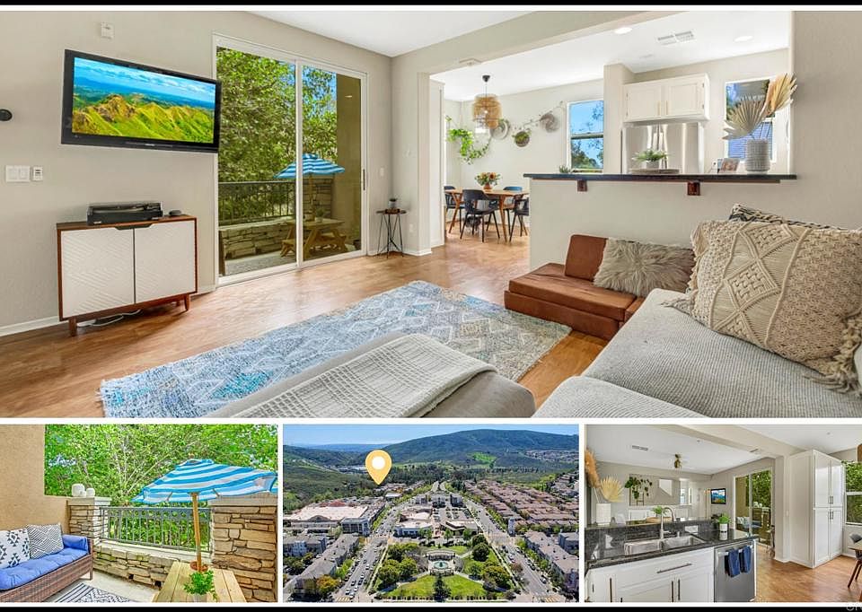 One of the best locations in the Creekside Cottages neighborhood nestled right in the heart of San Elijo Hills! Experience premier townhome living in this tranquil end-unit with lush trees and mountains as your backdrop. This home offers a popular tri-level floor plan with an open concept living space that seamlessly connects the family room, kitchen, dining area, and private balcony. The top level showcases lush views and features the primary bedroom with ensuite bathroom, a spacious secondary bedroom, additional bathroom, and laundry. For added convenience, the attached garage also includes a custom office/study nook. Enjoy the perfect blend of convenience and ease in Creekside Cottages conveniently close proximity to all of the amazing amenities of living in the picturesque San Elijo Hills community! Zoned for sought after San Elijo Elementary, San Elijo Middle, and San Marcos High School. Step outside your door and find yourself within walking distance to everything you need. A short stroll will take you to the local grocery store, an array of charming shops, and a variety of delightful restaurants. For outdoor enthusiasts, scenic trails are right at your doorstep, offering the perfect escape into nature. Creekside Cottages not only provides an idyllic living space but also allows you to enjoy the vibrant community life that San Elijo Hills is known for. This location offers the perfect blend of convenience, community, and prime townhome living!