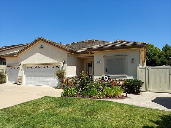This beautiful single level ranch style home was built new in 2007 and has been recently remodeled and updated. Centrally located in a recently built community of semi-custom homes in Camarillo at the intersection of Las Posas Road and Carmen Drive. Each of the 3 bathrooms now have handicap accessible walk-in showers that will accommodate a wheelchair if needed. The 3 car garage floor has been specialty coated and each garage door opening has its own power retractable screen that can be raised and lowered with the push of a button. There is a large Tuff Shed style storage shed in the rear of the property with windows and a locking door that can be used for storage or a separate workspace. There is a large RV concrete pad along the right side of the house to park a large motorhome or trailer and has full electrical and sewer hook ups for your RV. The back yard is beautifully landscaped with low maintenance fruit trees, rose bushes, ground cover and a professionally installed artificial turf putting green. The front yard has a large grass area for pets or kids to play and access to the front can be secured by a locking front gate. The owner is the original owner and this home has been loved and well taken care of. Two 220 Volt outlets are located on each side of the property close to the front of the house - one 220 Volt outlet is setup for the RV pad and another 220 Volt outlet is on the North (left) side of the property for Tesla or other EV charging. There is also an EV charging outlet located in the single car garage area.