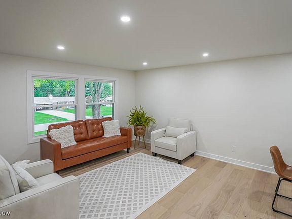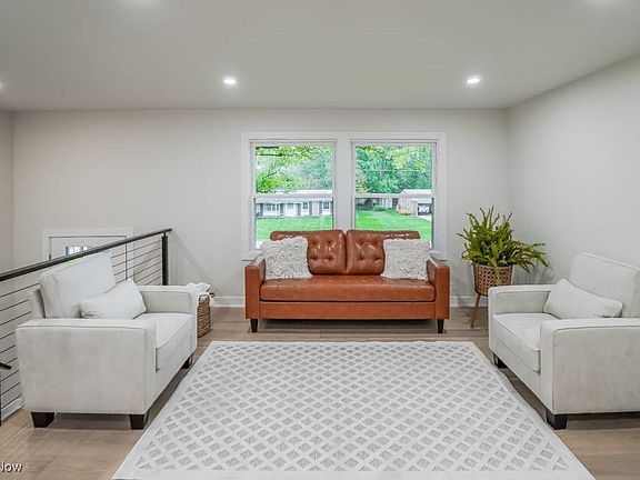 Beautifully remodeled bi-level on a corner lot just under half an acre! Recent upgrades include new siding, windows, gutters, A/C unit, hot water tank, water softener, electric panel, and exterior doors. Inside, stylish interior design features complement the hardwood floors that lead from the living room into the eat-in kitchen, complete with sleek granite countertops, dovetail cabinetry, stainless steel appliances, counter seating, and a dinette with a new sliding door to the pergola-covered patio. Three spacious bedrooms down the hall offer double closets, including the primary with access to a brand new full bath with a tiled shower and floating vessel sink. The lower level features a rec room with a sitting area, a wet bar with built-in beverage cooler, plus a new full bath with a glass-enclosed shower, and a laundry room with a stackable washer and dryer that leads to the attached two car garage. With all these modern updates, this home is truly move-in ready and waiting for you to enjoy. Call to see it today!