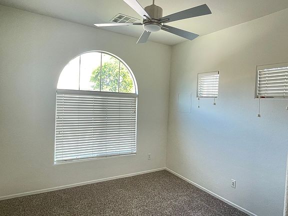 4 Bedroom, 2.5 Bath with NEW paint and carpet in Spectrum Community Pool, great community close to school, downstairs has bedroom and bathroom with shower, great office, in law suite or zin room, open great room into kitchen, upstairs 3 more bedrooms, master bedroom with on suite, view fence, HOA maintains front yard. Dirt back, grass could be replanted at tenant expense. Assist animals only.