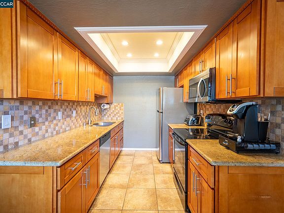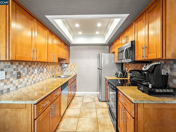 Welcome home to this 2-bed, 2-bath private top-floor condo! As you step inside, you’ll be greeted by vaulted ceilings and a cozy living room featuring a charming wood-burning fireplace. The updated kitchen boasts modern finishes and plenty of counter space for your culinary needs. Both bedrooms face the street, filling the space with natural light while offering privacy.The guest bathroom has been thoughtfully updated with a new vanity and a shower over tub. The spacious primary suite includes an office nook, a large closet, and a beautifully renovated en-suite bathroom, complete with a walk-in shower and an expansive vanity. Enjoy the outdoors on your shaded porch, surrounded by towering redwoods or take a dip in the pool! The condo also includes a 2-car detached garage with additional storage space. The HOA covers exterior maintenance, water/sewer, and trash removal. Located in the highly sought-after Morello Park Elementary school district, this home is perfect for those looking for top-rated schools and a fantastic neighborhood. Conveniently situated just minutes from shopping, Kaiser, restaurants, and vibrant downtown Martinez, you’ll enjoy quick access to the waterfront and local eateries. Plus, with close proximity to HWY 4/680, commuting is a breeze! OPEN SAT & SUN 12-3