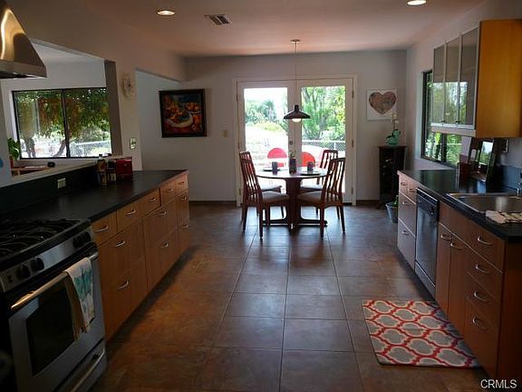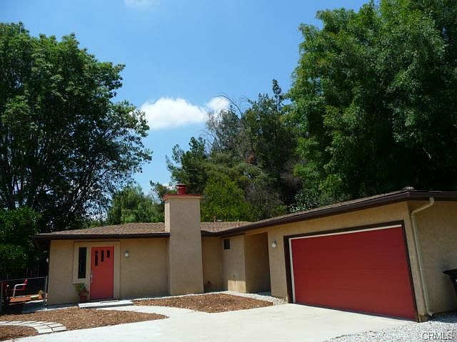 Fresh mid-century modern home completely rebuilt from studs on up in 1998. Located in a quiet and private neighborhood, you'll forget you're just minutes from the 210 and 57 Freeways. Take in stunning sunset views from just below Angeles National Forest. Have coffee on the redwood deck just outside kitchen. This 3 bedroom two bath home features loads of custom storage, large double-pane windows and gas fireplace. 2-car garage has nice built-in workshop. RV parking. Zoned for horses, there is ample room for a stable on the lower half of the lot.
