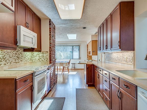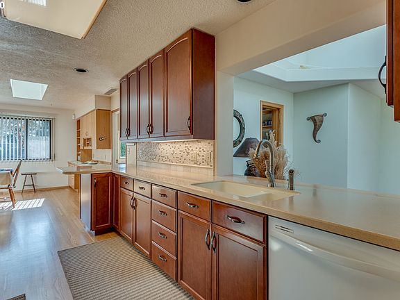 4BR/3 Full Bath. 3,100 sq ft one level w/caretaker's room or great office w/separate entrance. Remod Kitch and Master Bath, 2 gas furnaces & 2 gas water heaters, 2 car garage w/attached 16 X 18 shop. Garage & shop w/overhead storage. Hardwood & Tile Floors thru out, 2 wood brick fireplaces, Vaulted Master BR & Sunroom w/beamed ceilings. 12 skylites in this home! You'll love the large eat area in kitchen w/brick wood fireplace & loads of built-ins.