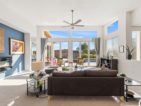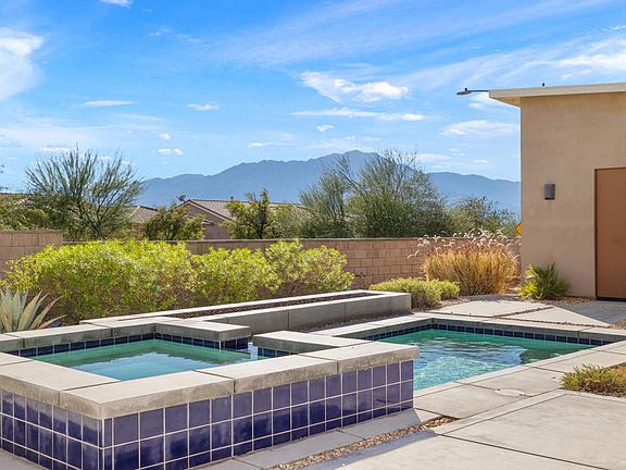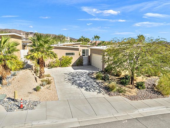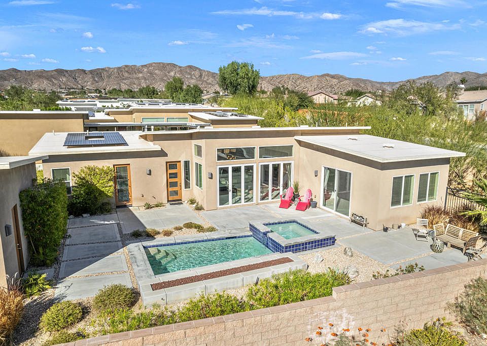Introducing 13996 Avenida La Vista, a stunning property located in the beautiful Desert Hot Springs, CA. This remarkable residence is the former model home for Vista Palms, a community of 95 single-family midcentury-inspired homes. With 1,918 square feet of living space on a generous corner lot, this home offers plenty of room to live comfortably and luxuriously.This splendid home boasts three spacious bedrooms and three bathrooms, designed around an open floor plan that flows seamlessly from one room to the next. The oversized windows throughout the house not only provide an abundance of natural light but also offer breathtaking mountain views that you can enjoy from the comfort of your own home.The kitchen is a chef's dream come true with its quartz countertops and ample storage space. It opens up to the main living area creating an ideal setting for entertaining guests or simply enjoying a quiet night in.Stepping outside, you will find yourself in your very own private oasis complete with a pool and spa. Gather around the firepit on cooler evenings or soak up the sun during the day while taking in the picturesque surroundings.This property is also equipped with solar panels, making it not only environmentally friendly but also cost-efficient.Desert Hot Springs is known for its serene landscapes and relaxing atmosphere. Just minutes away from this home are world-class golf courses, hiking trails, and local shops and restaurants waiting to be explored. Experience all that Desert Hot Springs has to offer at 13996 Avenida La Vista - where luxury meets convenience in a spectacular setting.