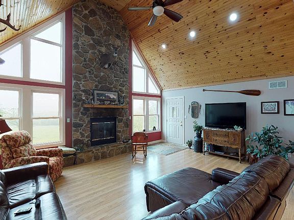 You'll LOVE the incredible views from every corner of this getaway home just outside of Rolla MO on 10 Acres m/l! This retreat style home offers 5 bedrooms - ALL w/ their own baths - a large lake w/ sandy beach, hot tub, pole barn, and new decks and balconies surrounding majority of home. Inside you can cozy up to the stone masonry vaulted fireplace. The open floor plan leads to the custom kitchen w/ granite counters, stacked stone back splash and adjacent mudroom w/ jack-n-jill bath leading to main level guest room. The master suite stands out w/ walkout to the hot tub and beautiful views, granite counter, double vanity, whirlpool tub w/ custom tile wall art, and sep shower. Upstairs there are 2 more bedrooms w/ balconies and baths. Downstairs the basement boasts a full kitchen, gas fireplace and another bedroom. Call to see today. Surrounding additional (113 Acres) available for seller finance for qualified buyers. See Duplicate MLS #19031401 for listing showing all sold together.