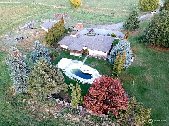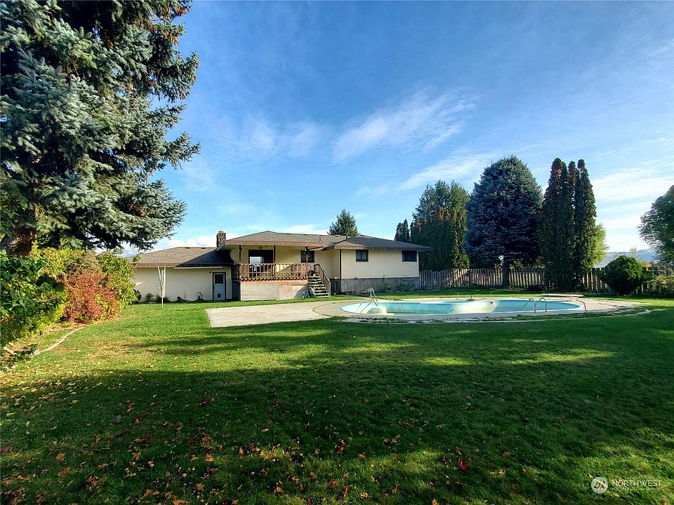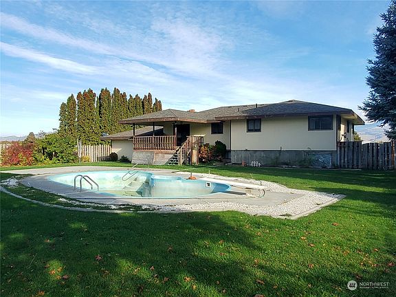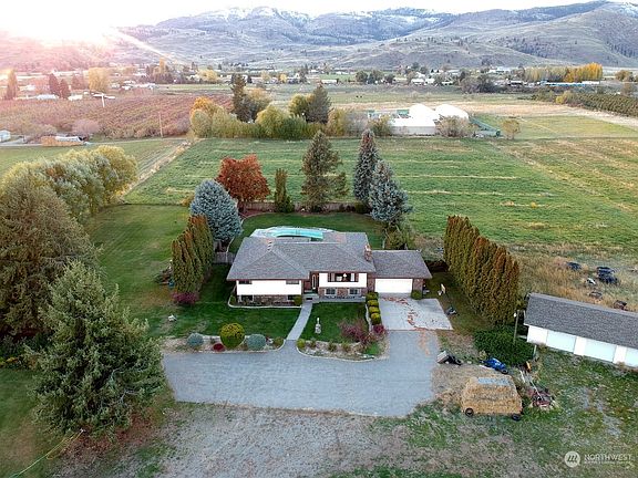 PRICE REDUCED! LOTS OF ROOM at this 5 bed/2.75 bath Omak home on 10.5+ irrigated acres. Over 3588 sf of living space w/living room w/fireplace, Separate dining room w/slider to covered deck, kitchen w/all appliances, den/office. Primary bed/bath suite with lots of closet space, utility room with W/D & folding table. Finished basement w/family rm w/wd stove, storage pantry, rec rm, 2 bdrms, PLUS 3/4 bath with hot tub, workshop. Main bath has jetted tub. Water softener. Attached 2-car garage PLUS detached 3 bay shop. OID irrigation, acreage currently in pasture with solid set sprinklers. Mature landscaping PLUS in-ground pool in fenced back yard. Sprinkler system, newer roof, private well. $529,900 H-3193/MLS2175210