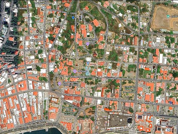 VACANT LAND for sale by owner next to historic Blackbeard's Castle, The 99 Steps and The Green Iguana Hotel. This R-4 zoned lot accessed from Store Taarne Gade is 3,459 sf with a beautiful view of Charlotte Amalie Harbor and Town. Current survey with bound posts; lot is outside Charlotte Amalie Historic Preservation District. Please email for more details