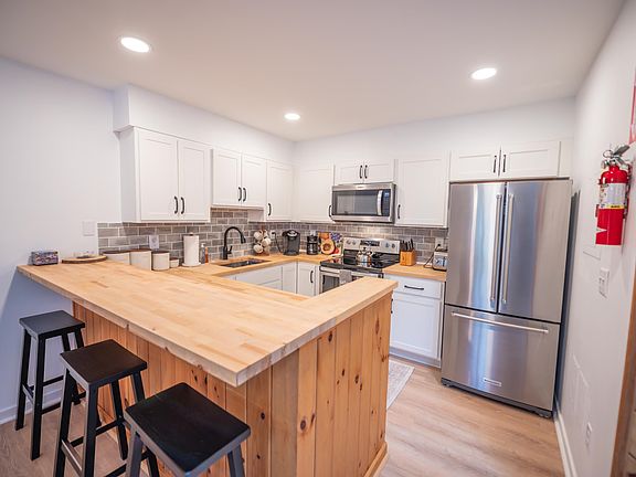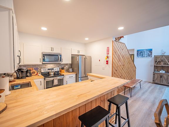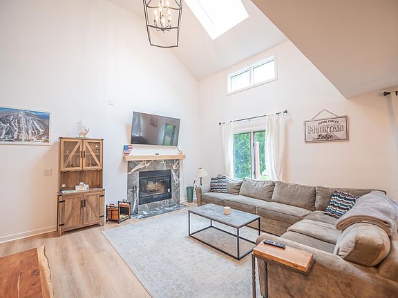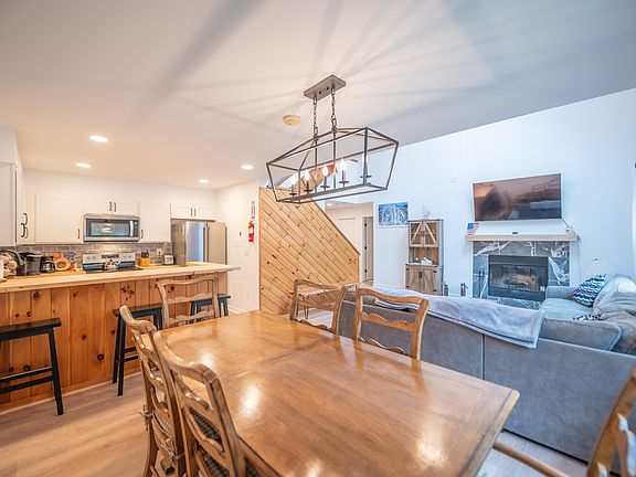 Unique vaulted and remodeled unit at Snow Mountain Village at the base of the Mount Snow ski resort, with heat and hot water included in the HOA fees! This spacious unit is conveniently located on the main floor with easy access from the entry. Inside you are greeted by a tiled mudroom area, which leads into the large vaulted great room, complete with wood burning fireplace and large windows. There is a nice size dining room to the rear as well as a large updated kitchen with breakfast bar, tile backsplash, butcher block counter, and stainless appliances. There are two sizeable suites, one on the main floor and one of the second floor, either of which could work as your primary bedroom, but the upstairs also has nice light and vaulted ceilings, as well as a soaking tub and second shower. Never worry about heating bills with rentals as the heat and hot water are included. The hoa fee also includes direct shuttle service to and from the base area, an indoor pool, hot tub, sauna, tennis court, landscaping, snow removal, building maintenance, and more. Each unit also has a nice size ski locker outside to stow your gear, and common area in the buildings.
