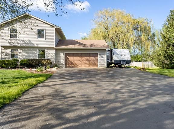 Beautifully situated tri-level featuring 4 bedroom, 2.5 bathrooms on a 1 acre lot! District 301 schools. Main level features spacious living room and separate dining space with french doors that go out to the large deck. Kitchen features tile flooring, 2 pantries, stainless steel appliances and plenty of cabinet space. Upper level of home has 3 of the 4 bedrooms, 2 full bathrooms and laminate flooring throughout. Spacious master with en-suite attached. Lower level features large family room with walk-out to deck, 4th bedroom, laundry room and a half bathroom. Owners have dug out a crawl space and made a usable walk-out basement with plenty of space. The backyard is large and gorgeous with a garden shed and creek running in the back of the property. Roof was replaced in 2010 with 30-year shingles, siding and 6" gutter and guards replaced in 2018/2020. Furnace and A/C were replaced in 2018. Feldco windows 2016. Extra long driveway with a parking pad for trailers or motor homes. Septic system is Multi-Flo mechanical system, which means no field and very low maintenance. This is rural living at its best. Unincorporated, but close to everything. Minutes to Randall Road, I-90 and Metra. 21 minutes from O'Hare airport, shopping and all that downtown Elgin has to offer, but still has the feel of the country. This is the best value in Wildwood West! Ask your agent to reach out about concessions!
