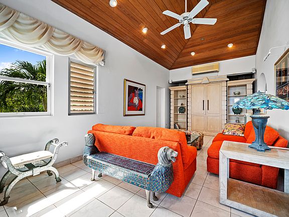 ''Large and spacious home near the top of Hawk Hill, featuring high cathedral ceilings and maximum structural reinforcement. The property sustained no damage during Hurricanes Irma and Maria -- a rare distinction in Frenchman's Bay. Includes a 60 kW diesel generator and a small 1-bedroom apartment downstairs. See 3D virtual tour in photos. Note: Most of the furniture and artwork will convey with the sale; a list of what conveys (and it is a lot!) is attached in documents.''See 3D virtual tour in photos.