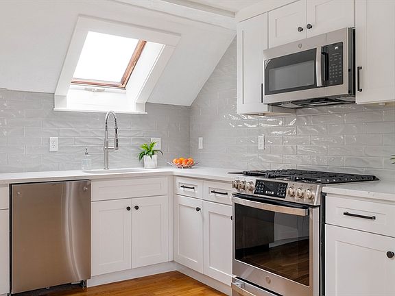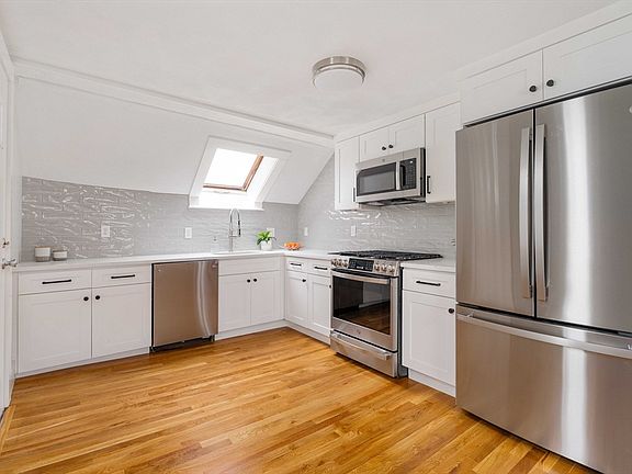 Charming historical detail meets modern convenience and style in this thoughtfully updated 2-bed, 1-bath condo! Nestled on a tree-lined side street in the Cedar Park neighborhood, this airy top floor unit is that rare find — a well-appointed starter home with new kitchen and bath, in-unit laundry, outdoor space, parking and charm to spare. 16A Emerson Place boasts a smart layout with fabulous natural light. The home welcomes you with a large mudroom, w/ laundry hook-ups and space for shoe and coat storage. The new eat-in kitchen features stainless appliances, quartz counters, and tile backsplash with ample storage and counter space. The bath was fully renovated with a luxurious walk-in shower and tile floor. The bedrooms are nestled up a few stairs off the living room and the luxurious primary bedroom features abundant space for a seating area or home office, leaving no box unchecked. Moments from local restaurants, schools, shopping, new library, the Fells, and Cedar Park MBTA stop!