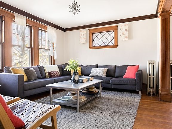 Located on a tree-lined side street in East Arlington, blocks away from the Alewife T station and the Minuteman bike path, this classic Arlington multi-family blends traditional with eco-friendly efficient. A first floor flat is comprised of 2BR/1BA with living, dining, and 2006 renovated kitchen with direct access out to a deck and yard. The 2nd and 3rd floor duplex unit offers 4BRs/2BAs with a classic layout on the main level. A kitchen toward the back of the house opens to the private deck overlooking the yard and garden. In 2017 the owner built out the top level of the home with 2BRs and a full bathroom, including radiant heat flooring, a steam shower and many custom appointments, as well as a full solar array onto of the roof. A full basement with dry-basement system, storage and separate utilities. Off street parking for three cars. 1/2 block to Mass Ave’s commercial district including the Capitol Theater, local restaurants and down the street from Magnolia Park