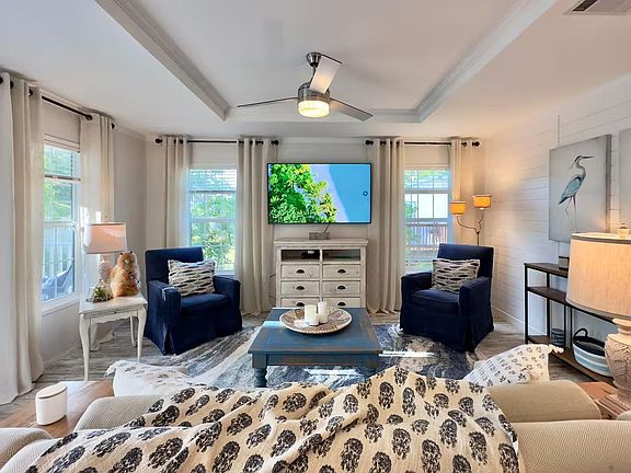 INCOME-GENERATING HOME - TURNKEY - NO HOALocated in Santa Rosa Beach just about 7 minutes from the ocean and roughly 2 minutes from Cessna Landing on the bay, this updated 3BR/2BA coastal home combines strong income potential with an easy, ready-to-use setup. The street is quiet and newer, with tall pines directly across from the property and no homes in front, creating a private, relaxed, wooded feel while still being close to 30A beaches, dining, and shops.Built in 2019, the home features an open living / dining / kitchen layout, bright neutral interior, modern decor, durable flooring, a large kitchen island, and newer appliances and TVs. Freshly painted front porch and rear deck extend the living space outdoors.Outside, the 0.14-ac re lot is fully enclosed with a new full privacy fence, a new BBQ deck, and an outdoor dining area, plus driveway parking for multiple vehicles.