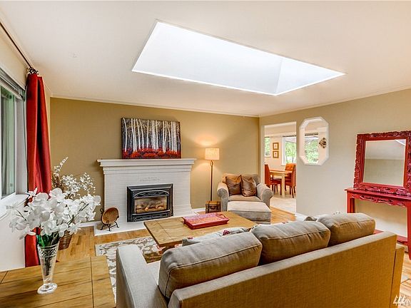 Quality built rambler-move in ready. Freshly painted interior, refinished hardwoods, new floors in kitchen, new stainless dishwasher & stove, updated bathrooms & new windows. Cheerful spacious living room with skylight, hardwood floors & gas fireplace. Separate family room, or 'flex space', has a 3/4 bath & fireplace. This space could be used as a formal dining room, large office, media room or converted to a large master suite. Fully fenced back yard with inviting outdoor covered living room.