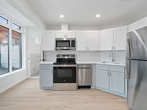 Each home at Broadway Haus is a study in thoughtful detail and contemporary comfort. Wide plank vinyl flooring runs throughout, setting a warm, natural tone. Recessed LED lighting casts a soft, sophisticated glow, while sleek white quartz countertops and GE stainless steel appliances including in-unit washer and dryer bring ease and elegance to daily routines. Mitsubishi heating and cooling systems ensure personalized climate control all year long, and spacious closets offer smart, seamless storage.