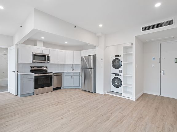 In-unit washer and dryerGe stainless steel appliancesSpacious closetsWide plank vinyl flooringSleek white quartz countertops