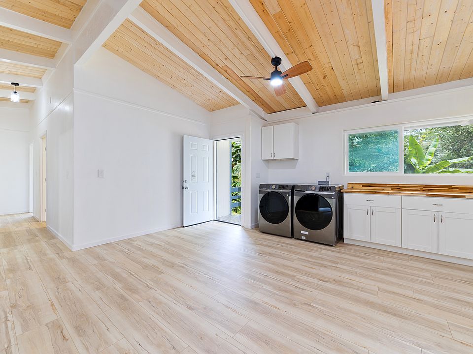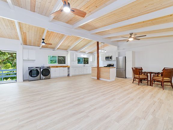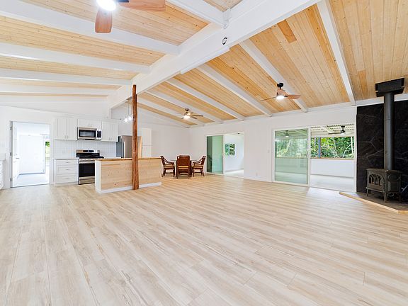 New guttersSleek quartz countertopsTranquil nanawale estatesLuxury plank flooringVaulted ceilingsUpdated kitchenNew stainless steel appliances