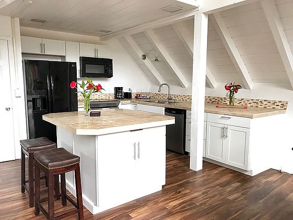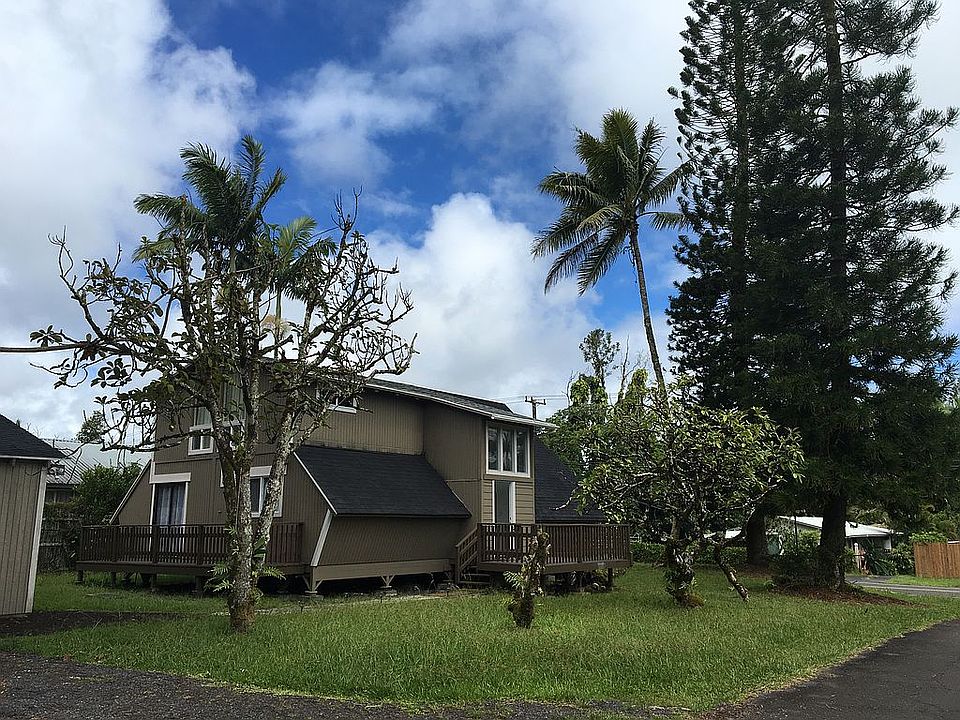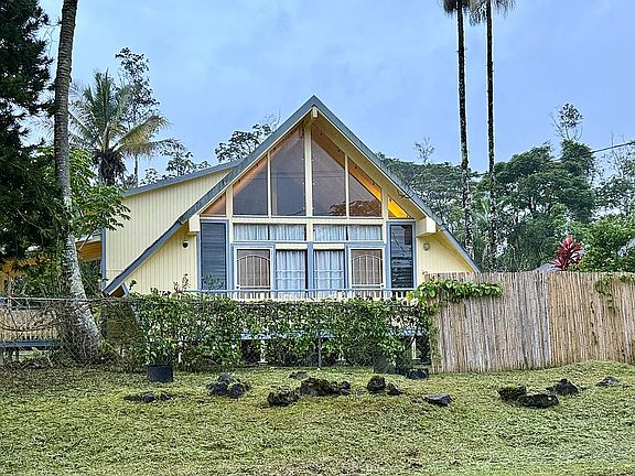 Turnkey home with everything you need to use as an investment property for short term rentals or primary residence. Everything stays! Current owner has a legal STVR license. This adorable A-frame home in Nanawale Estates has tons of character. The main level boasts an open concept space with cathedral ceilings plus two bedrooms and a full bath. The second level houses a loft area and the primary suite with a full bath. Enjoy the outdoor space with three decks, outdoor table to dine al fresco, or sit by the firepit. Step outside your door and pick fresh lilikoi (golden and giant) from your own vines or some coconuts, avocado, and citrus. Other features include Split AC units, paved roads, county water, home mail delivery, newer metal roof, newer hot water heater, and a community pool. Driving distance to many local eateries, farmers markets, and beaches. Park the car in the garage and spend the evening at home or explore all the island has to offer. Welcome to your new island home!