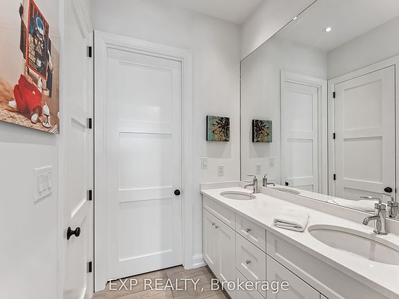 Experience the pinnacle of refined living in this stunning, meticulously curated residence nestled in the heart of Niagaras prestigious wine country. This architectural gem harmonizes timeless elegance with modern sophistication, offering a lifestyle of comfort and grandeur.Enter through a custom-designed front door into an expansive layout adorned with soaring 8-foot interior doors. The main level features 2+1 spacious bedrooms, including a lavish primary suite with a walk-in closet enhanced by motion-sensor lighting and a spa-inspired 5-piece ensuite complete with a soaker tub, walk-in glass shower, and premium fixtures.A culinary masterpiece awaits with a built-in Sub-Zero refrigerator, Wolf range, and an impressive quartz island illuminated by a show-stopping chandelier from the Four Seasons Hotel Collection. Custom lift-and-slide patio doors extend the living space to a tranquil terraceperfect for al fresco dining and entertaining.The inviting living room centers around a bespoke double-sided gas fireplace, while a stylish den and additional bedroom are serviced by a luxurious 4-piece bath. A sleek 2-piece powder room features designer finishes, and a spacious mudroom with garage access blends function with flair.Descend to a fully finished lower level designed for entertainment and wellness. It features two additional bedrooms, a state-of-the-art theatre room with acoustic bass traps, a private gym, a personal sauna, and a 4-piece bath with heated tile floors and quartz countertops. A custom laundry room with built-ins offers ample storage and convenience.Wrapped in distinctive Eramosa stone, the professionally landscaped grounds include wild strawberries, a serene terrace with hot tub, built in stone firepit, and an automated irrigation system. The oversized double garage features brand-new doors and direct interior access.Located in one of Niagara's most coveted communities, this residence masterfully blends luxury, functionality, and natural beauty.