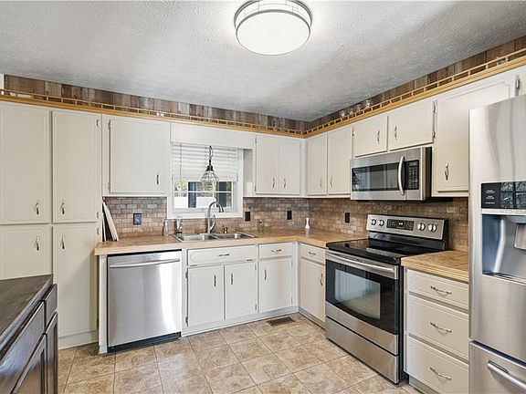 Welcome to 14 Arbors Way in Cartersville, GA 30121—a thoughtfully designed split-level home that offers both space and function across three finished levels. Set on just over half an acre with no HOA, this 4-bedroom, 3-bathroom home offers 2,043 square feet of flexible living space ideal for hosting guests or simply spreading out. Upstairs, the vaulted ceilings and large arched window flood the family room with natural light, making it the heart of the home. The stone fireplace with wood mantle adds warmth and charm, while hardwood floors and neutral tones create a welcoming ambiance. Flowing from the family room is a spacious dining area that leads into a kitchen with stainless steel appliances, painted cabinetry, and a rustic-style island that adds character without sacrificing practicality. Just off the main level is a screened porch that overlooks the fenced backyard and mature trees—perfect for relaxing mornings or cozy evenings. It’s an inviting space to enjoy fresh air without the bugs and offers plenty of room for outdoor seating or dining. The primary bedroom includes tray ceilings and an ensuite bathroom with dual vanities, while two additional bedrooms and a full hall bath complete the upper level. On the lower level, a large bonus room provides flexibility for a media room, gym, or home office. The fourth bedroom and third full bath are also located downstairs, offering privacy for guests or older children. Outside, the fenced yard features an above-ground pool structure ready to be replaced, plus a covered bar area ideal for entertaining. The layout provides a great opportunity for your next backyard project—whether that’s a pool refresh or expanded patio area. This home sits on a .59-acre lot with plenty of space to garden, relax, or simply enjoy the outdoors. Conveniently located near Cartersville amenities and with easy access to I-75, it offers the perfect blend of comfort and convenience. Schedule your private showing today and see all that 14 Arbors Way has to offer.