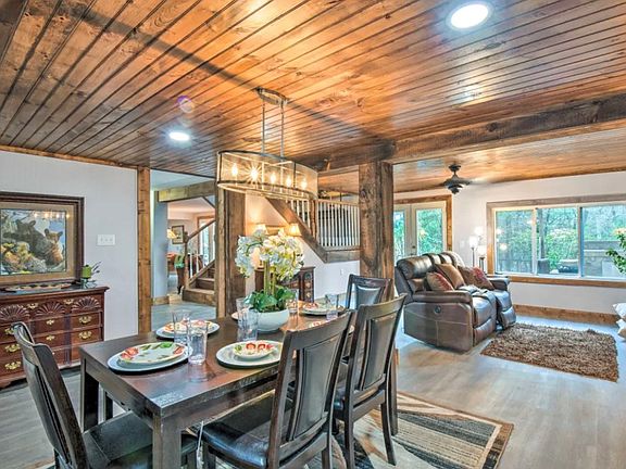 Beautiful newly Renovated Autumn Lodge with vaulted tongue and groove ceilings , stainless steel appliances , granite counter tops, washer and dryer , two open family rooms, pool table, hot tub, large covered and not covered deck areas. One acre of country living at its finest. Includes water, internet, 3 movie channels, lawn care. Completely furnished and available October 1, 2025. Years lease