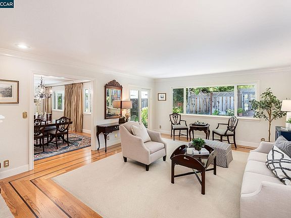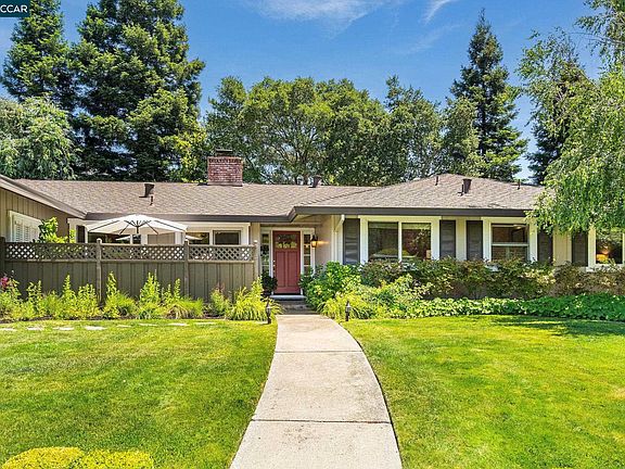 Nestled on a cul-de-sac just a short stroll from Downtown Danville is this charming Westside single-story home w/ample room to add an ADU. A neutral color palette compliments hardwood floors flowing throughout the living spaces. The chef’s kitchen is appointed w/cherry glass-front cabinetry, SS appliances, breakfast bar & eating nook that opens to the front fenced patio, perfect for savoring your morning coffee. The formal dining room transitions easily into the inviting living room, anchored by a classic brick fireplace & direct patio access. The spacious family room is a warm retreat w/beamed ceilings, fireplace, built-in desk & window seat ideal for work or relaxation. The expanded primary suite offers a walk-in closet, 2 additional closets, private access to the back deck complete w/a spa & seating area. Attached is a remodeled spa-inspired bathroom featuring a Restoration Hardware dual-sink vanity & stall shower. Down the hall, 2 front-facing bedrooms share a hall bathroom. Step outside into your private backyard oasis surrounded by lush landscaping, ideal for entertaining. Enjoy a sparkling pool, expansive patio w/pergola, sitting area, lawn, enclosed garden beds & space for an ADU. Located near The Iron Horse Trail & vibrant downtown Danville w/its array of shops & dining.