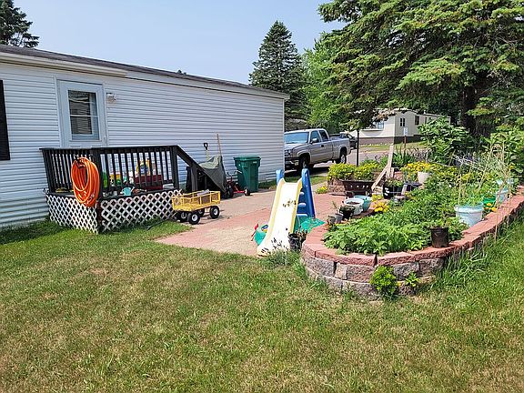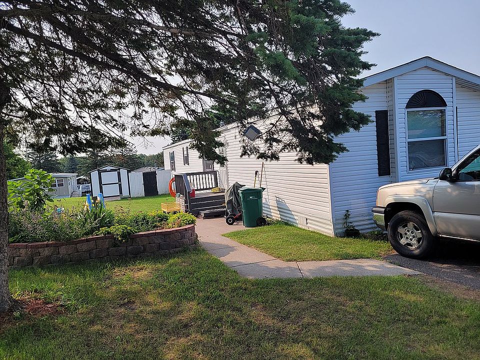 $55,000 but open to taking offers. A 3 bedroom 2 full bathroom trailer home with a 2 car driveway located in Vintage Acres Mobile Home Park, in Gary New Duluth. Walk through the front door entering the living room light fixture and fan replaced in 2019, an open floor plan with the kitchen and dining room to the left (light fixtures replaced 2019, microwave replaced 2020). A small closet, perfect to store your broom, mop, vacuum, and any other cleaning supplies, between the living room and kitchen. Contuing through the kitchen/dining room, down a small hall sits a built in desk for your computer and cabinets above it for storage. Besides this is the back door and your washer and dryer, with shelving above them to place your laundry items and any tools you have. Throught the doorway at the end of the hall sits the master bedroom, with a walk in closet, and a large window to let in the sunlight. Connected to the master bedroom is the master bathroom. The flooring was replaced three years ago, and a water trough style soak tub with a hand pump for water was installed as well. A shelf built around it is a wonderful spot to place your bath bombs, bubble bath, or candles, and relax after a long day with a book or drink. A decent sized vanity with storage underneath with a tall three level towel cabinet beside it. It also has a walk in shower. Going to the right of the front door is a hallway leading to the second bedroom, use it as a bedroom, a play room if you have a child, or it would be a good office space if you work from home! Further down is the second bathroom, floors replaced three years ago, with a small cabinet under the sink, toilet, and a bath with shower. At the end of the hall is the third bedroom, with has a large window and small bench/shelf you can place things on infront of it. Outside there is a shed to store your lawn mower, snowblower, shovels, garden equipment, bikes, or whatever else you need to. A small fenced area also provides extra storage area for items that are okay in the elements. The patio sits outside with a raised garden bed on two sides of the patio, half filled with flowers and the other portion made into a place to plant tomatoes, cucumbers, herbs, and other edible plants. A lovely spot to sit and enjoy the nice weather during the day, or have a fire outside at night. A playground and basketball hoop is within view of the yard. Stowe Elementary School I'd within walking distance, as well as a bud stop that will bring you into duluth. Close to Stowe Schools is a dog park, basketball court, community garden, and a skate park being built. The location is also close to the short line hiking trail, munger trail trailhead, mangey-snively natural area, and many other outdoor activities! Lot rent includes water, sewage, and trash, so it can vary depending on how much water/sewage you use. It is about 640 a month for us. While it does need a bit of TLC, it is move in ready! You can easily fix it as you go/want to. Contact us if you have questions or to make an offer. More pictures will be posted soon.