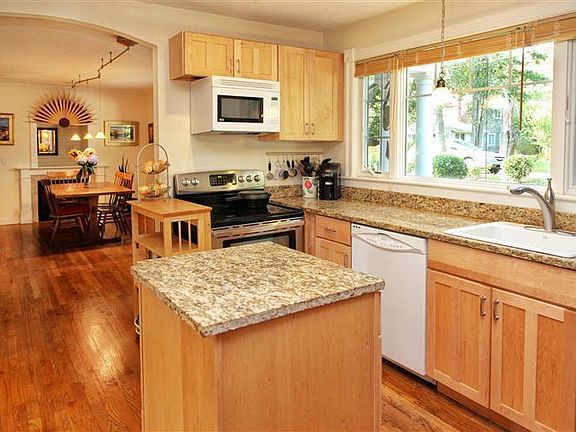 The perfect Downtown Falmouth location - near the shops, restaurants, Library, parks and even close to the Harbor and Surf Drive Beach. This house was totally re-built in 2004. The kitchen enjoys granite counters and an island. Versatile living spaces include a dining or living room with a gas fireplace, den area with sliders to the fenced in rear yard and a first floor bedroom and bath. The second floor has a large loft and a lovely bedroom, bath and laundry. With hardwood floors throughout, this house is full of interesting angles and spaces and is full of personality. The oversized garage has a second floor with skylights that would be a great art studio. Beautiful gardens surround the property.