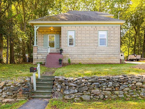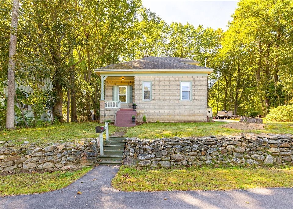 Cozy wood stoveCovered front porchClassic stone wallFirst-floor laundryPaved drivewayImproved yardNew floating laminate flooring
