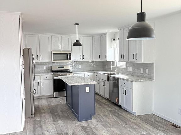 All stainless kitchen appliancesOpen living-dining-kitchen concept