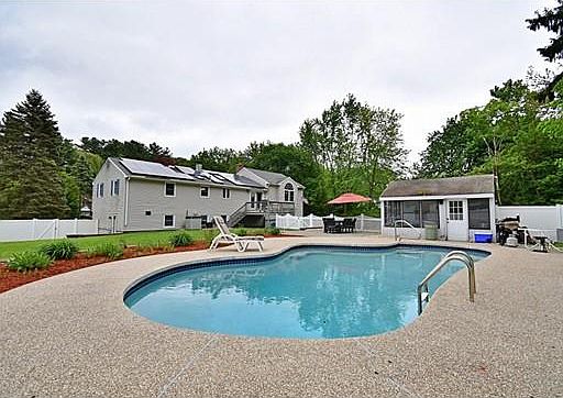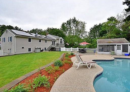 Welcome home to 14 Bear Hill Rd Billerica! Expansive split entry home on quiet cul de sac.....The main floor offers three well sized bedrooms and a main bath, enormous dining room, eat in kitchen loaded with cabinetry and natural light. Walk up a few steps to the entertainment sized cathedral great room with a gas fireplace. On the lower level you will find a family room, full bath, bedroom and an office. Relax in your private, fully fenced backyard by your gunite pool! Gorgeous landscaping, flower beds and new patio. You will not want to miss out on this. Many updates include interior paint, new gunite pool/plumbing and concrete, new washer/dryer, new electrical to pool w/outdoor subpanel, fencing, irrigation in back w/flower bed watering system, gutters, high efficiency heater and hot water. Please, Make Yourself At Home.