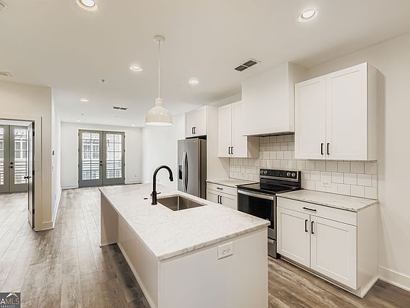Experience refined luxury living in this beautifully crafted condo by Toll Brothers. This one-level Manor House residence features a thoughtfully designed layout with 1 bedroom plus a versatile study, 1 bathroom, and a seamless open floor plan. High 9-foot ceilings, wide plank flooring, and designer finishes create a modern, inviting atmosphere throughout. The spacious kitchen is anchored by a large island and flows effortlessly into the dining and living areas, perfect for entertaining or relaxing at home. The dedicated study/office provides flexibility for remote work or creative space, while the generously sized bedroom includes a walk-in closet for maximum storage. A stylish full bathroom and convenient laundry area complete the home's functional design. Step outside to enjoy exceptional community amenities, including a shaded grilling station, outdoor dining areas, fire pit, bocce ball court, and dog run. Ideally located, you're just over half a mile from the BeltLine Eastside Trail and minutes from Ponce City Market, with shopping, dining, and entertainment right at your doorstep. This home is the perfect blend of comfort, convenience, and modern elegance in one of Atlanta's most vibrant neighborhoods. Also, an impressive affordable monthly HOA.