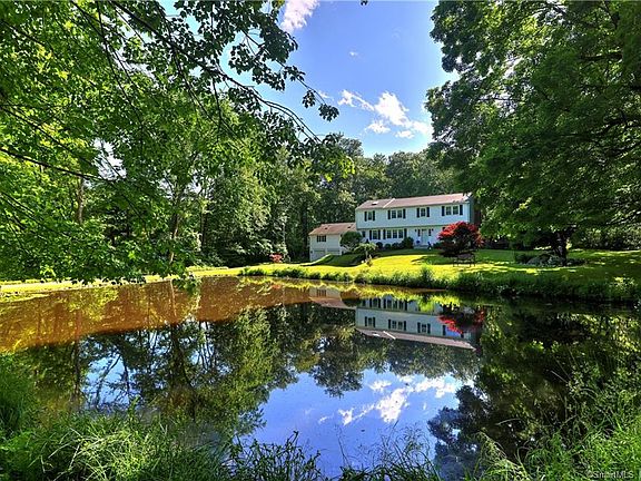 Stunning 4 bedroom 3 and a half bathroom colonial set on a picturesque 2.25 acre lot, complete with a beautiful pond filled with wildlife. The interior of this home is just as impressive; the main level has hardwood flooring throughout, french doors leading into the living room with a beautiful brick fireplace. Next is the bright family room with with large sliding doors leading out to the spacious back yard with its large deck, perfect for relaxing or entertaining. From there you'll enter the dining room through another set of french doors, and then into the spacious kitchen with its granite countertops, oversized sink, and stainless steel appliances. The upper level hosts the primary bedroom suite with vaulted ceiling with skylight, the bathroom suite has a beautiful double vanity, jacuzzi tube, and private shower. The second bedroom is spacious enough to be a second primary bedroom and features his and hers closets. The 2 remaining bedrooms bedrooms are generously sized with ample closet space. The lower level is fully finished with its own kitchen, living area, full bathroom, and office space. Above the 3 car garage is a large space that could be used for a workshop, extra storage, ect. Property has many recent upgrades including: new furnace in 2020, new driveway in 2017, new windows in 2013 & 2022, and many more! This home is conveniently located close to shops and restaurants, and is minutes from the Merritt Parkway. Call to schedule your showing today!